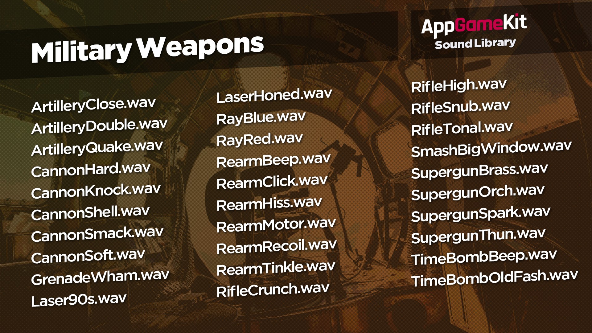 The AppGameKit Sound Library has just been updated with 30 new sounds and a new military theme category!