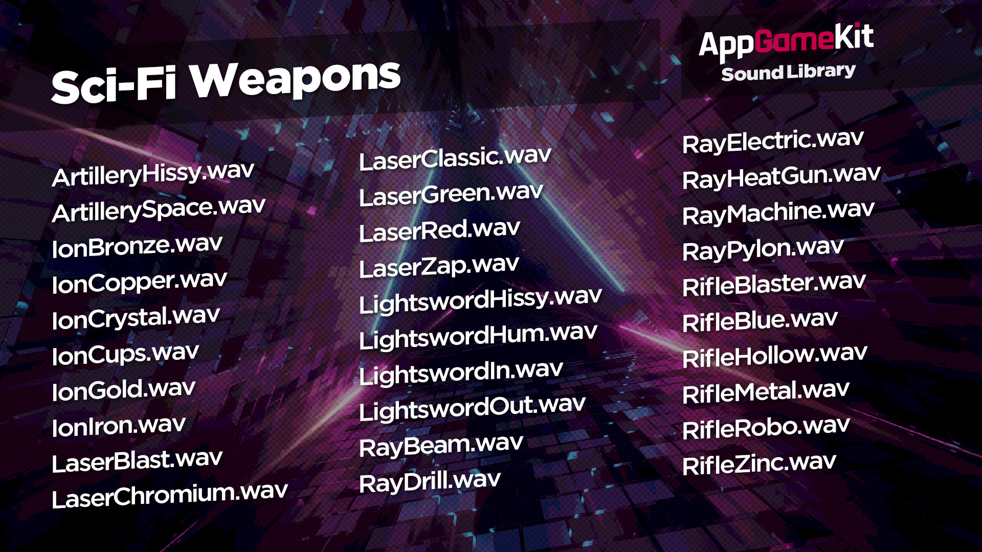 The AppGameKit Sound Library has just been updated with 30 new sounds and a new sci-Fi weapon theme category!
