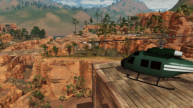 Included in the GameGuru MAX Hub are several demo levels showcasing the kinds of games you can create, and a good number of them are created by members of the community. A notable contributor and excellent level designer is 'Ghost LOL', creator of the demo called "Canyon Offensive"; a romp through rock-lined hills on a mission to mash through waves of enemies and puzzles to reach the island's only helicopter.