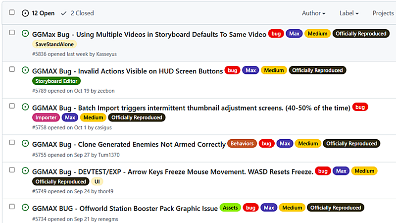 Welcome to the fourth quarterly update of the year! Here is your round-up of all the fixes and improvements since September 2024. The issues board count remains tolerably in the 20 to 30 range and we have recently introduced two new tags for 'Officially Reproduced' and 'Investigating'.