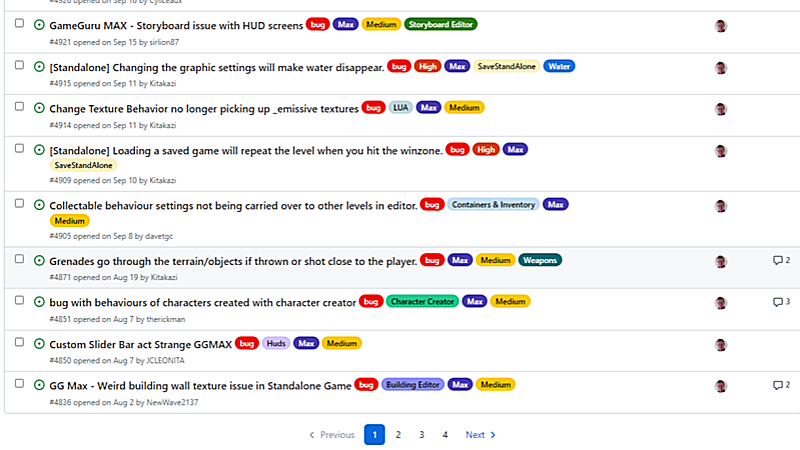 The great news is that we hit one of our mini-milestones, pushing the last reported bug count of 136 down to 84 remaining reports for the end of October 2023, now displaying on just four pages on the GitHub issues board.