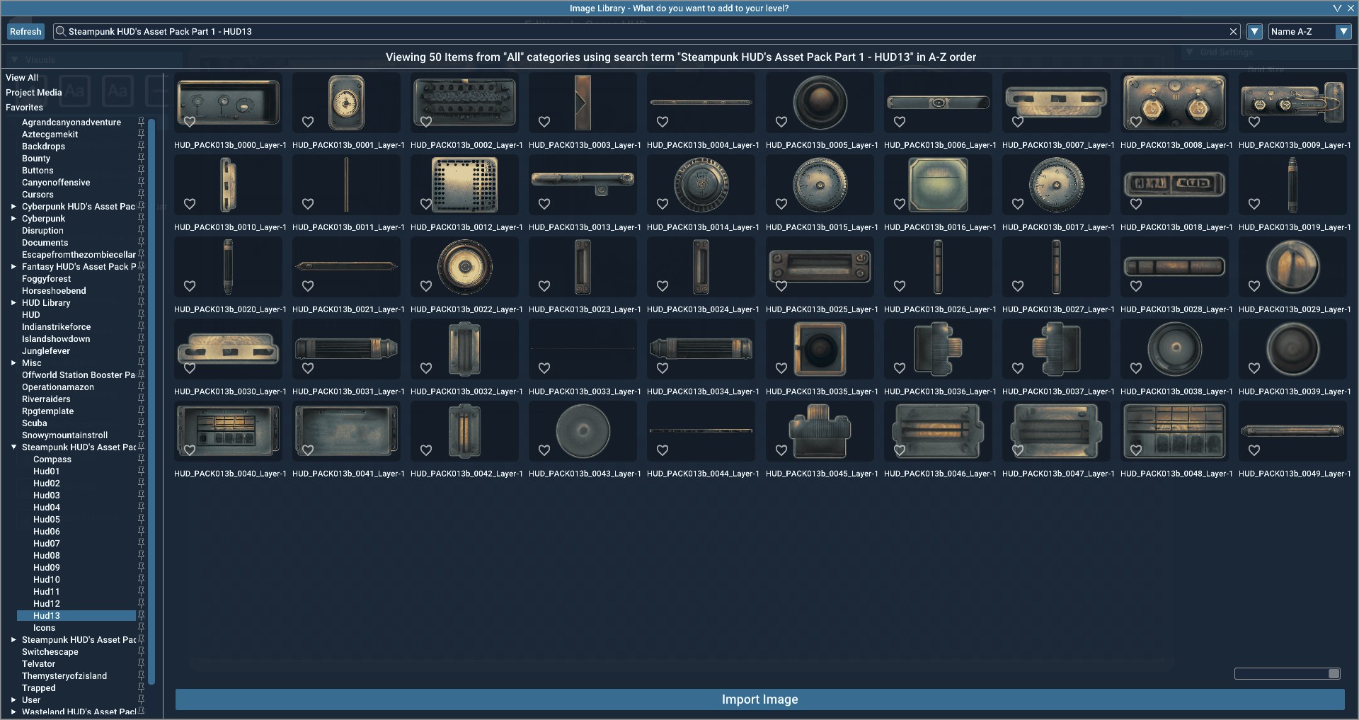 The GameGuru MAX Steampunk Asset Pack - HUD's allows you to easily create your own great looking, high quality in game Inventories, compasses, trade screen, and a host of other RPG and role playing screens.