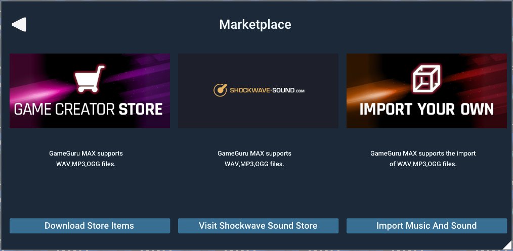 - Game Creator Store - takes you to the independent Game Creator store where you can browse music and sounds