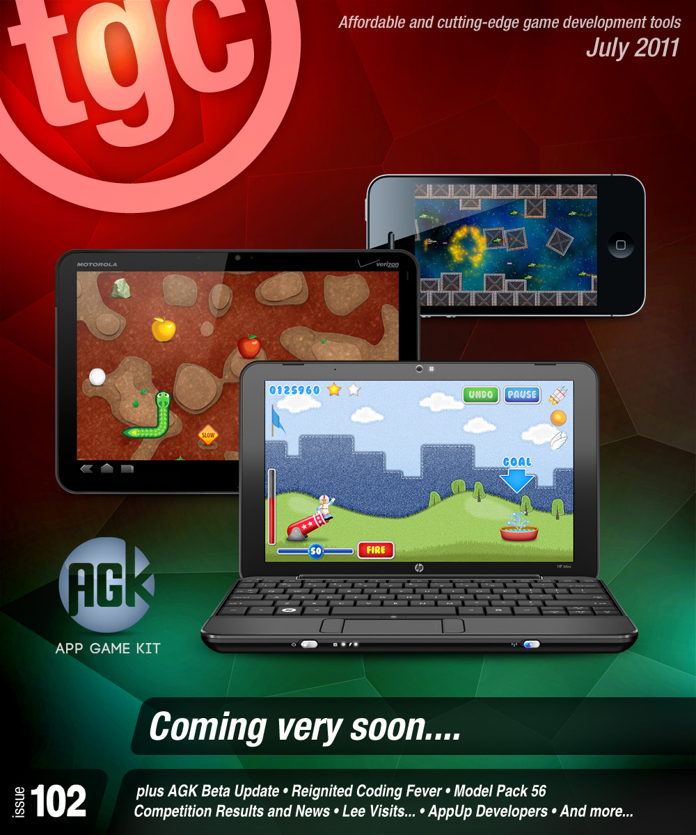 This month Rick Vanner brushes off his coding skills and immerses himself in his own casual game-making using AGK. We have news on a new platform that will make its way into version 1 of the AGK, making your casual games instantly accessible to another market of players. The AppUp section provides more insight into this avenue of marketing your creations, and we have a host of other newsworthy items for you to browse through - once you've put down those peskily addictive games!