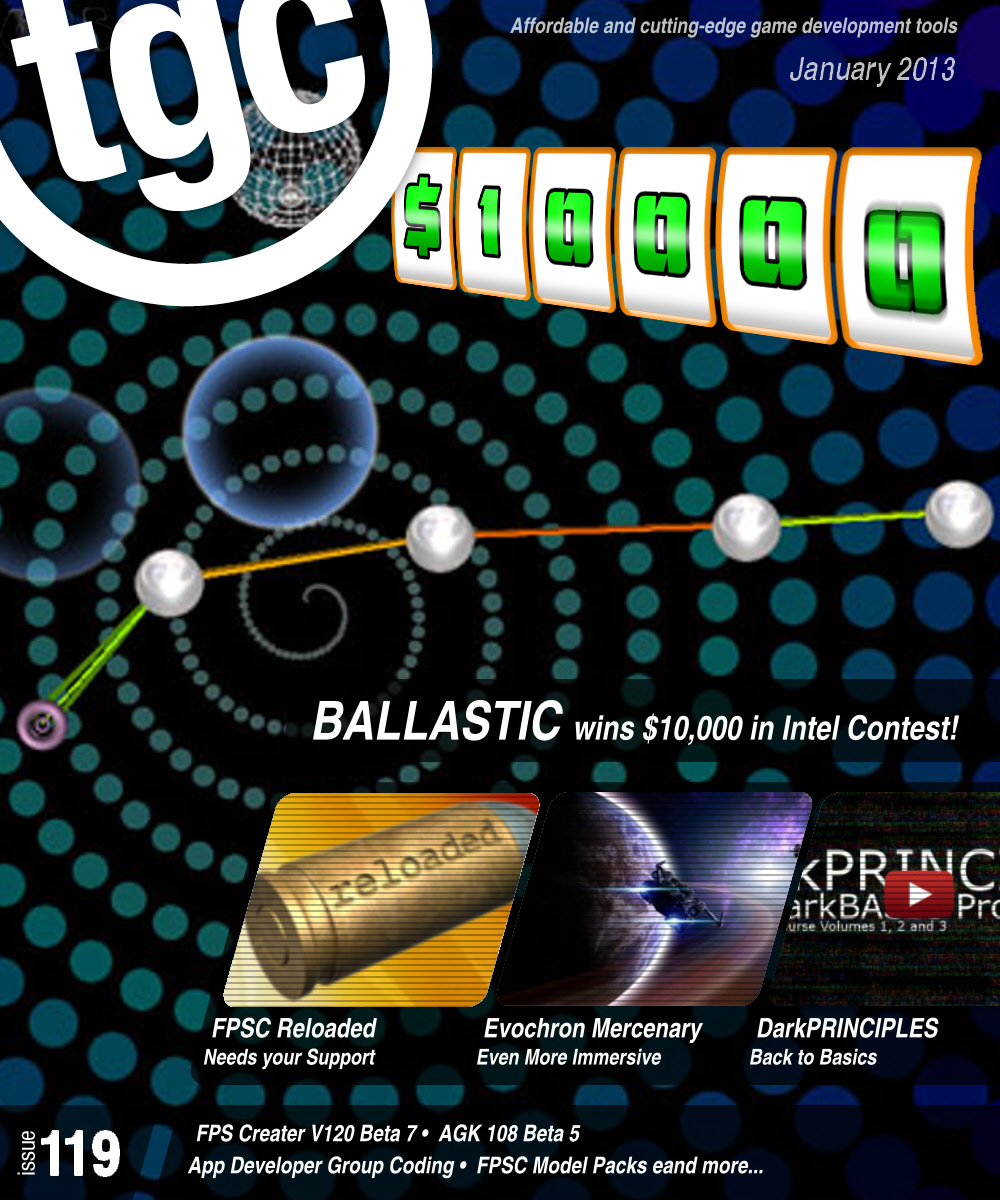 We start the year by reporting on the latest successes from the Intel Competition. The most successful independent DarkBASIC game of all time appears with a new shine and more interplanetary adventures. We have added 2 more model packs to the FPSC range, published more beta versions of FPSC and AGK, and much more to read in between.