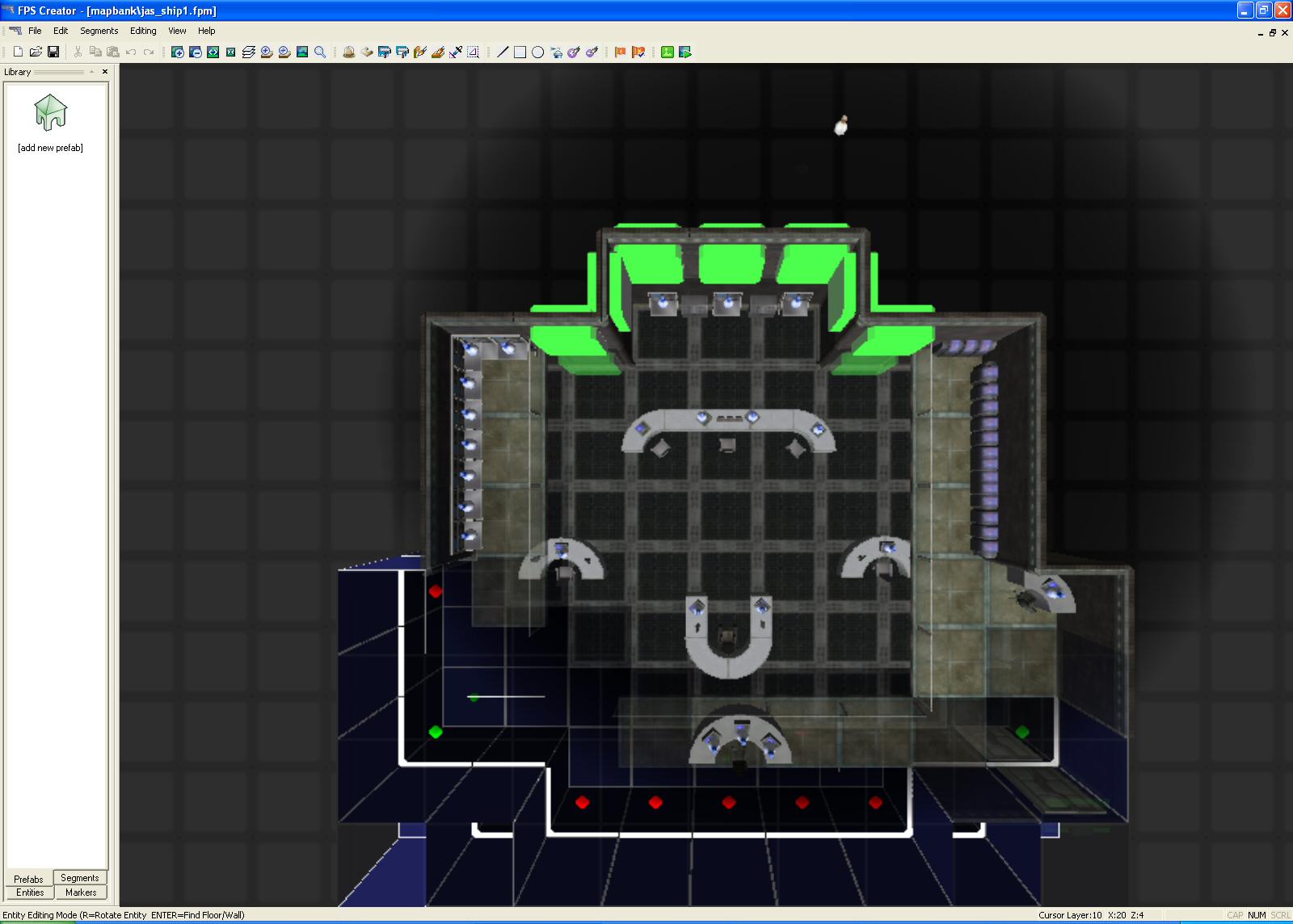 ![]() The following screen shots were taken from a recent build of FPS Creator by Jason Dean. Here you can see the interface and resulting game from several angles with and without lightmapping enabled. Click on each screen shot for a large 1600x1200 pixel version.