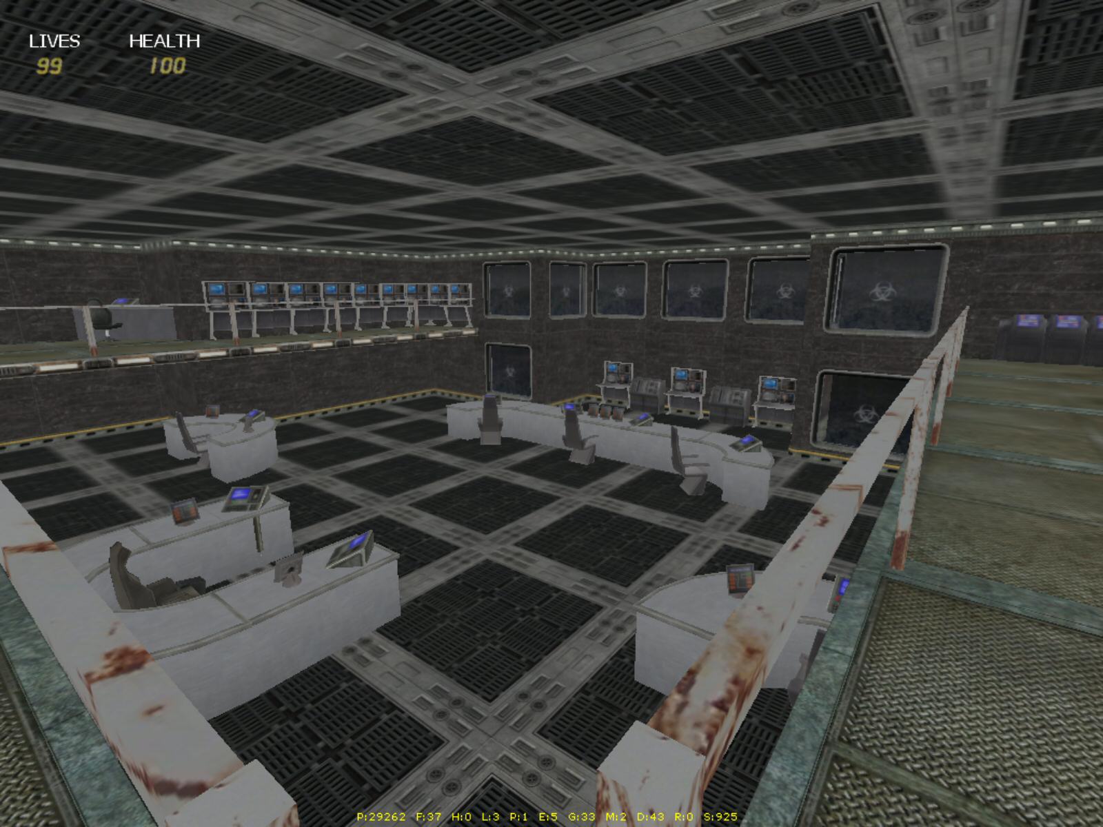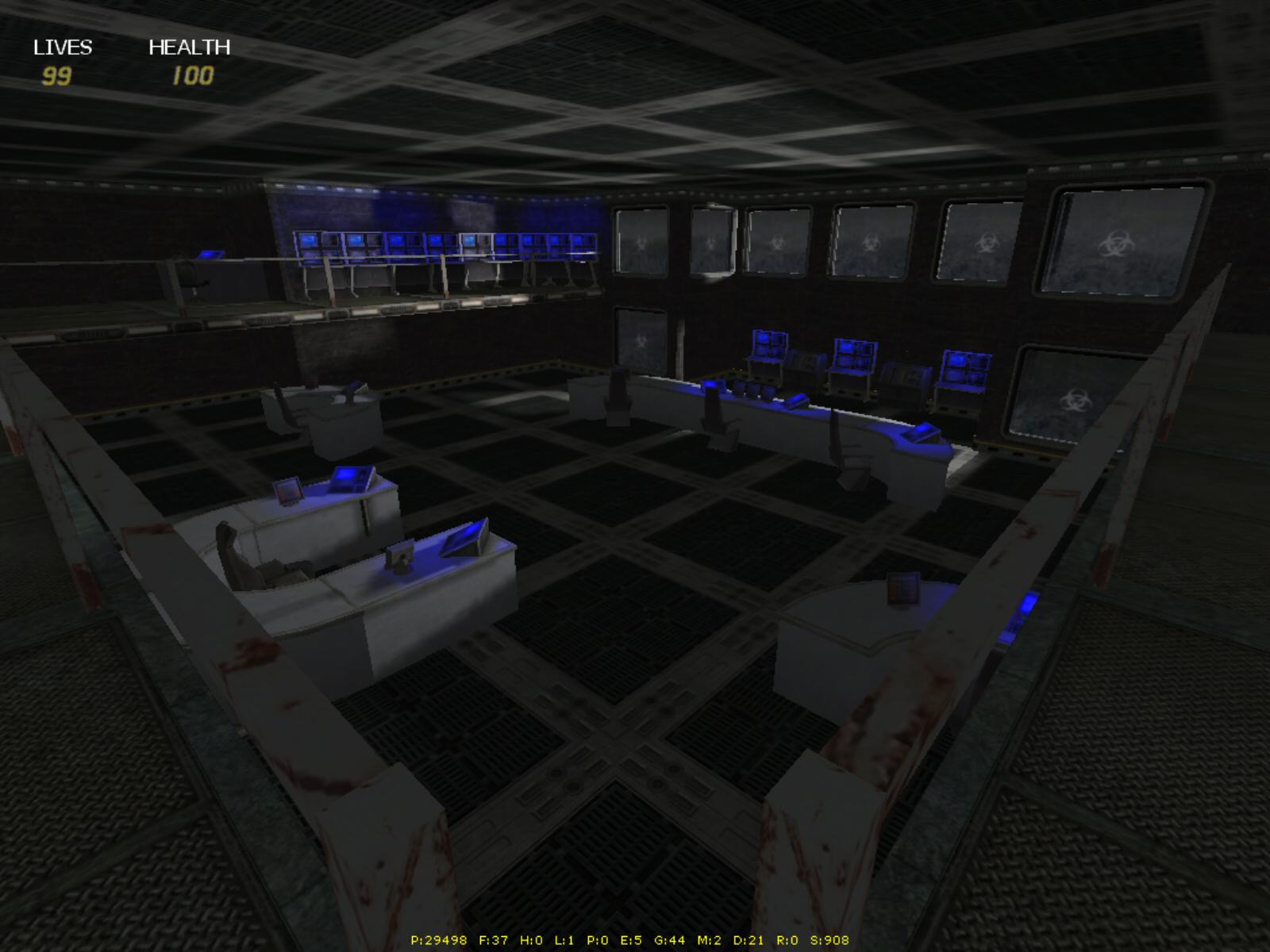 ![]() A view of a level loaded into the editor with light placement. You can see various lights located above the computer monitors, etc.