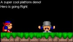 Phew, after that explanation I understand if your eyes are rolling in circles. But, don't worry, the hardest stuff is behind us, now you understand the way Omega Basic handles your source code we can now move on to making something interesting. I will try and move over the theory are quickly as possible, because although boring is needed so that you know what exactly we are doing. Then I will introduce the problems and the code to solve them. We are going to be making the basics of a platformer, I would have liked to have progressed further this month, but I am quickly running out of room, and so you will have to wait..sorry! Ok, so our platformer is going to be made of some nice grass, our hero and the evil enemy. The enemy is going to be automatically walking around looking for trouble, while the hero is under the control of the user. We are going to need some variables to get everything working, and so here we go. Click here to view the source code The lines that begin with Rem are comments, and are therefore there to help explain what is going on. The Dim keyword is used to create a variable; variable names that end with $ denote that it is a string. Right, we have some variables, now let's make it more colourful with some images. Click here to view the source code As you can see, we need to surround everything in with Try..EndTry. This is because Omega Basic provides as much flexibility to the user as possible. Instead of Omega Basic giving your users some obscure error you are free to handle errors in your own way! We are dealing with files here are we load the images from the image files, and so need to catch any IO (Input/Output) errors. Once we have the images loaded we can do fancy things such as make animations, set frames and create arrays of sprites. Creating arrays of sprites is a cool little time saver, which allows you to pop any number of identical sprites into an array. Imagine not having this functionality when creating space invaders...ouch! Next up is the main function, now as this handles lots of code I am going to break it down into the actions, and then write commentary between these. If you want to copy and paste the code then don't copy my comments otherwise you will end up with the compiler spitting out all sorts of crazy errors. So, here is Paint action, which if you remember is where all the actual drawing is done! Click here to view the source code To keep things nice and neat I have split the action into a number of sections. First of all basic screen preparation is done, this includes painting the screen black and drawing some text on screen. I usually prefer to paste debug onto the screen than use the print command, however it is personal preference. When the basic tasks are finished we can then get the nice sprites on screen which gives a beautiful starting screen (Fig 1). With some simple sprite creation and painting we have drawn our scene that is shown when the game begins. If Omega Basic has now scared you silly then sit and admire your creation; while everyone read on! We need to save the day by making our hero walk around. ![]() Fig 1. Next up is allowing the super hero to do something other than look forward, as this isn't going to save the day. Therefore we need to do something with the KeyPressed action which is going to let us press the right arrow to move right and the left arrow to move left. So first of all is let us set our variables we made before so that our engine knows how to draw our superhero. Click here to view the source code Now when we press left the heroDir$ variable is set to left, and when right is pressed heroDir$ becomes right. We now need to make our hero move, animate him to look that little bit more real and to make sure he doesn't walk off the screen. Tada.. Click here to view the source code Finally, to wrap up our adventure with Omega Basic we need to make our enemy do something more than just stare at us. A simple, but effective approach is to make him pace left and right, just stopping short of the hero and the right screen edge. So, here goes, you will notice that it is very similar to the hero movement, just that the enemy will automatically turn. Also notice that the enemy is controlled by the loop action that we learnt about; this ensures that the enemy will do his own thing without relying on anything else. Click here to view the source code I hope you have enjoyed my introduction to Omega Basic tutorial, in terms of flexibility and features I have only scratched the surface. Therefore next month expect to see something more interesting that what we did today. The full media and source is available below! Full source + Media: OmegaBasic_Tutorial_Platform_Part1.zip (150KB) Easy Level EditorEasy Level Editor is exactly that - a level editor for use with DarkBASIC Professional that allows you to easily create levels for your games or programs. There are two versions: Lite and Standard (Lite being the Free version) and it includes features such as: