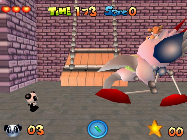 "PanPan is a cute little Panda who lives in the world of Wonder Land. One day while the Panda went out to play outside of his village the crazy evil Professor Ting-Tong arrived and captured the other animals, including PanPans friends, for his robot-building experiments. Upon his return PanPan found his entire village swamped with robots and cyborgs and his friends gone. So off he goes in search of the cause of this disaster." If the plot may sound like it's aimed at the younger generation of players there is a good reason for this: "In Thailand computer games, which are mostly all imported from other countries, are very popular. But almost all of them are pirated due to their expense for the average Thai gamer. Moreover, games for little kids can rarely be found these days. That is why we created "PANPAN the Adventure" back in 2004. This was a 2D action game and was very well received and a best seller, but for 2005 it was time to give PanPan a new appearance and bring the world alive in true 3D." "When we made PanPan and his world into 3D models we had to ensure they were still suitable for everyone, players of all ages. Although the game is in 3D we keep the angle of the screen fixed in order to avoid dazzling or confusing younger players, and we have found that a 3-year old child can easily play this game. They really seem to like it because it's not complicated and because of the colourful graphics and non-violent style."