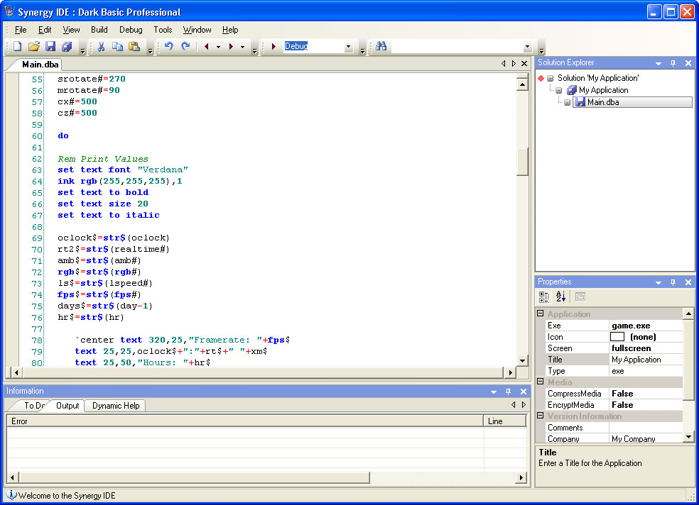 Best of all, this first course is being released to gameSpace owners at no charge. It provides a general overview of gameSpace and its features, but even experienced gameSpace users will find something new in here. The course author, Drew Clark, has plenty of experience in using gameSpace to make games, and he'll be passing on the benefits of that experience in this and future courses! Be sure to watch out for future gameSpace Mini Courses too - four more are in the works, and all will be kept short, sweet, and affordable! gameSpace owners - check your email for details of downloading the first course. For those interested in buying gameSpace you can get more details about it from the web site below. Web Site: //www.thegamecreators.com Synergy IDE - Open Beta TestA new multi-language IDE is on the horizon, called Synergy it's by the same developer as Omega Basic and uses a familiar Visual Studio layout. Beta testers are wanted (see the end of this article). Current features include: