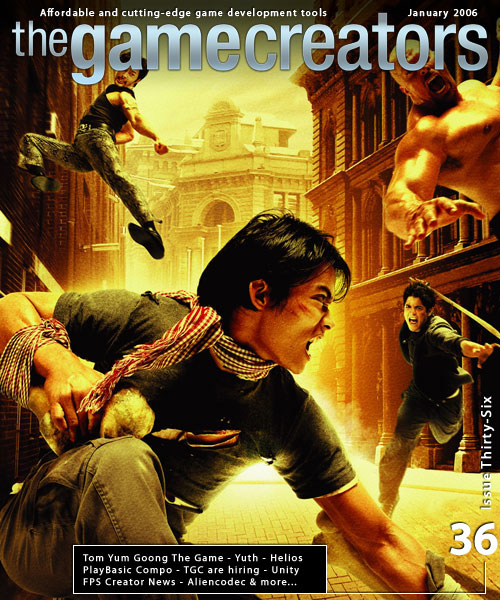 Welcome to both 2006 and Issue 36 of The Game Creators Newsletter! I trust you all had a good festive period and have entered 2006 with all guns-blazing, raring to go?! This is an exciting year for The Game Creators. We're only a matter of weeks away from a deadline on a new project prototype that will shape the way the whole company progresses this year. We're hiring new staff, releasing new software and gearing up for a completely brand new web-site launch. Development on the core three products (DBPro, DGSDK and FPSC) continues, and we will see new versions and upgrades for all of them released this year. FPS Creator has now hit retail in the United States, which is giving it a far wider exposure than our web site ever could. This also means it is finding its way into stores such as CompUSA. This issues contains a couple of top articles including an exciting new Muay Thai martial arts game from Thailand, which is none other than the official game of the film Tom Yum Goong - read all about it, watch the videos and check out the screen shots. It's exciting to see DBPro being used for such projects and again confirms its ability to handle such games. The final few days of December 2005 also saw the final release of Helios Meheness - easily one of the best shooters of the year. Grab it, play it, adore it. What predictions do I have for 2006? Well, I expect to see DBPro hit version 6, but more importantly there will be significant changes to the Dark Game SDK. TGC as a company will continue to expand, with new staff coming onboard to help with the ever increasing workload. We will witness Windows Vista make its debut, and with it DirectX 10. Of course we'll adopt that technology, maybe with a new version of DBPro? Or maybe with a new product entirely. Who knows - we'll see how Vista pans out first, but it wouldn't surprise me if this time next year I'm announcing the first betas of a completely new Vista product based on the DB range. Nothing is definite yet, but it can be considered a forgone conclusion, i.e. will happen, it's just a matter of when. TGC has gone from strength to strength in 2005, our products continue to gain in popularity, and we are expanding into exciting new areas. This period of growth shows no signs of slowing down. We're a strong, fighting-fit and successful company, and we'll embrace 2006 with the same vigour and drive as every other year. What is more - you all appear to be doing the same. Last year saw some of the best DBPro games yet created. I expect this year to bring us more wonders. I hope you enjoy this issue. If you're still on vacation enjoy whatever is left of it. 2006 is going to be a good one, make no mistake about it. ContentsTGC seeks FreelancersThe Game Creators are looking for candidates to fill the following freelance positions: PC Pixel Shader Programmer