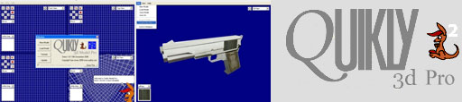 The author is waiting for some DGSDK updates relating to shaders before release, but hopefully we will see something soon. The screen shots on the web site certainly look impressive enough. Web Site: http://www.mpl3d.com/solar.htm Helios Meheness v1.2We reported on an exclusive beta of this game last issue, but since then Grant has gone and released the full thing - and already updated it once! I could give a long explanation about what this game is and how it plays, but instead all I'm going to say is: This is the dogs hairy bits! A truly quality retro inspired frantic arcade shooter, with awesome graphics, sound and playability. Drool over the screen shot below, then download it and enjoy, and finally participate in the forum thread below to let the author know what you thought. Positive feedback is the only way to ensure more stunning creations from this most prolific developer. ![]() Nice one geecee3 - more, please! Download Thread: http://forum.thegamecreators.com/?m=forum_view&t=67850&b=5 Ric's Coding ChallengeTrying to think of what to do with DarkBasic Pro next? The focus is on coding: No media, DLLs, or plug-ins are allowed, so it can really help you get an idea for a project or just develop some solid coding skills. The challenges are short so as to keep interest. If you don't like a particular challenge, it's only about two weeks until the next one. Of course, if you want a particular challenge, simply win the current challenge and you get to select/make the next challenge. Rics Coding Challenge thread will see its one year anniversary on February 10th 2006, and has well over 2000 posts. The Thread: http://forum.thegamecreators.com/?m=forum_view&t=48011&b=1 Shmup-Dev![]() Received the following about a new forum that caught our interest: A new website, www.shmup-dev.com has been opened, which is focused on development of modern shoot 'em Up style games and the innovation of new games related to blowing stuff up. The site is mainly there for discussion on creating them, showcasing them, etc. As the site is new and just launched we're still in the process of modifying the look and feel, applying a new logo, and feedback would be greatly appreciated. It will be great to see anyone of you guys that are into shooters there, especially if you could drop by a few minutes a day and read up on our latest posts and / or post a message of your own! I hope to see you there, thanks for reading!! I welcome anyone to post/upload their games over there as well, if they would like to (you can do so in WIP section too) as a bonus for being a member!! :) Size limit is 10 Megabytes. So if you need a place to store your game and it isn't too big, you\'ve got a nice little home for it! Web Site: http://www.shmup-dev.com Quikly 3D Model Pro![]() "Quikly 3d Model Pro" is a 3d modelling package specifically designed for making models for using in videogames. It is very easy to use, even for beginners and is designed to intergrate instantly with Dark Basic, Dark Basic Pro, and of course, Quikly 3d Games Studio Pro. There are 2 versions available: Quikly 3d Model ProThis is the Full version. It is FREE when you purchase "Quikly Games Studio Pro" or available to purchase on its own for £9.99, around $17.49 US), or €14.99. This version is a boxed product with free worldwide delivery. People who purchase the standalone and decide to upgrade at a later date can request a reduced rate for Quikly Game Studio Pro. Quikly 3d Model FreeThis version is FREE for registered, non spamming users of either "TheGameCreators.com" or "Quikly.com" forums. It is the same as the full version but limited to 25 boxes, and 512x512 final texture. This version is download only, and can be requested from Quikly.com once you've been an active member of either forum for 30 days+ The Latest demo is now available. This demo has some features disabled, a new version coming very soon with them reimplemented Apologies for the slow loading times in this demo, these will be fixed soon. Ditto the fact you can only use 512x512 textures. So what can this package do? Here are some of the features: