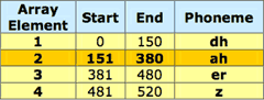 It's time to introduce Anna. Anna is a beautifully modeled and animated head and is ready to demonstrate the results of the previous step. She can also be used as the basis of your own character models. She has "poses" for each phoneme which we can trigger using our lipsync file. Run the DarkVOICES main application, and watch the introductory tutorial. Once Anna has introduced the application to you, load the audio file. You will see a graphical representation across the bottom of the screen, and the phoneme data overlaid. Play the audio, and watch Anna spring to life as she dictates. The immediate results are impressive. If the automated conversion didn't quite get the inflection correct, you can use DarkVOICES to fine-tune the data and save it back to the lipsync file. Bearing in mind that the intended use is in games, perhaps in cut-scenes and other dynamic environments, and so 100% accuracy isnt necessarily essential. You can decide where the trade-off lies between painstaking analysis of every syllable, and reasonably accurate but quick results. Implementing the resultsSo far, we have used the tools to create the data, test the results and fine-tune the output. The most important step is putting the work so far into its natural habitat your game. To highlight the fact that the lip-syncing data and the models are separate entities, Im not going to use Anna. In fact, the syncing will be applied to a sprite-based character instead. There are no new commands to learn; the remainder of this tutorial will put what you already know about programming to use in a new and highly dynamic way. So let's get started. As usual, the code is written as a self-contained include file, so you can drop all of the hard work we are doing here into any future project. Data StructureThe lip-syncing data is an array of timings and phonemes. Take a look at the speechLoad() Function to see how we simply read in the file and create a DarkBASIC Professional array from the data. Each line contains the start time, end time and phoneme. The timings are in milliseconds, and all relate to the start of the audio track. The second point to note in this function is the mapping of the full range of 39 phonemes to just 9 that we will use for simplicity. For example, the sounds created by "b", "m" and "p" can all be mapped to one facial expression. The mapping of these phonemes is already done for you in the example code provided with DarkVOICES. The principles behind using the data at runtime are very straightforward. As long as we know where we are in the sound track, we can apply the associated expression as dictated by the array of data. Each element represents a phoneme and a timeframe. So, at 1000 milliseconds into the speech, we extract the phoneme from the array that covers this moment in time. The following table represents the word "Dark", phonetically: ![]() So at 300 milliseconds, we would interrogate element number 2 and derive the phoneme ah was required. Again, the sample code demonstrates this. ConclusionAll that is left for you to do now is to review and run the code. Remember, there are no new commands so you can run the program without owning the product. If you do already have a copy of DarkVOICES, you can very quickly record and convert your own dialogue, and apply it to the tutorial program. Our robot isn't quite so attractive as Anna, but he proves that we can now apply synchronised speech to any model or animation. ![]() The audio in this example was converted to a lip-sync file before adding the robotic effect. The lip-sync file is also untouched, the results were more than adequate in the original conversion. Until next time, Happy Coding! Download Tutorial: DBPro_Mar06_Tutorial.zip (2.7 MB) dbLounge goes UKThe dbLounge is a DarkBASIC Help site, which is already standard in the German DB community. It provides many features to help DBP Users, like a user based online command documentation, a tutorial system and a system to easily publish source code. Every month a new offline version is automatically generated, which can be used as a separate html help and may be integrated into the original IDE help system. Additional features are for example: automatic code highlighting(with command linking), code conversion (to forum bbcode), style able interface(for registered users) and an easy navigation system. Check the site itself to see all the features. Why not join in and start filling up the English part of the site? (and be sure to check out some of the excellent German DBPro code while you are there!) Web Site: http://en.dblounge.org Darkside PD![]() You know you are in for a treat when someone posts a new DBPro DLL to the forums with a name of 'Snowy The Evil Snowman' :) Well, Snowy has done an awesome job and his latest DLL is a 'Display DLL'. This DLL lets you capture screen shots of your desktop etc, set your desktop wallpaper, set your display mode and make grid collision zones. This is of course all from within DBPro using simple commands. This DLL is free, and what is more - if you take a look at Snowy's web site you'll find a whole stack of other DBPro DLLs. At last count there were 13 DLLs on there and they cover some great areas, including: