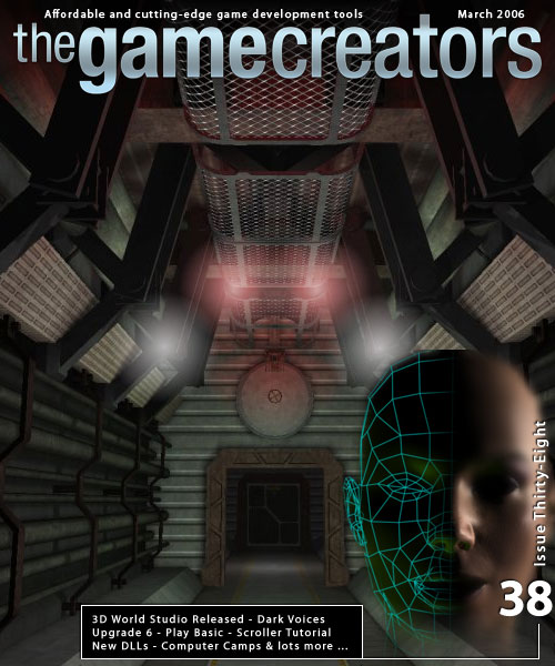 Welcome to Issue 38 of The Game Creators Newsletter. It feels like only yesterday I was writing the editorial for the previous issue. I guess February is a short month after all, but it has been no less busy than January! There are two new releases this month that should perk-up your game development interest antenna: DarkVOICES is a lip-sync tool. It will allow you to load (or record) a WAV file, and will then analyse the waveforms to create lip-sync data for your games. It's clever stuff and isn't even limited to 3D games as Steve Vink's tutorial this month demonstrates. The second big release is 3D World Studio. This is the powerful successor to Cartography Shop and offers a stack of new features (cool looking terrain anyone?!) and a faster lightmapper to boot. So, not too bad for a typically quiet time of the year.