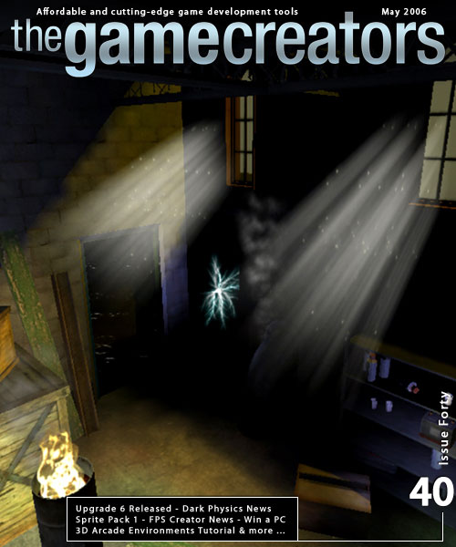 In the newsletter this month we see the release of a new animated sprite pack, part one of a new tutorial series on creating 3D Arcade Environments in your games. Steve Vink concludes his HUD tutorial. There are stacks of FPS Creator related news items, and no less than two competitions. We even take time out to play a little easter game. For those of you eagerly awaiting Dark Physics we present you a small snippet of source code, so you can see how the commands work, plus a screen shot of the new format documentation you can expect to receive with the extension. Release isn't far away now!