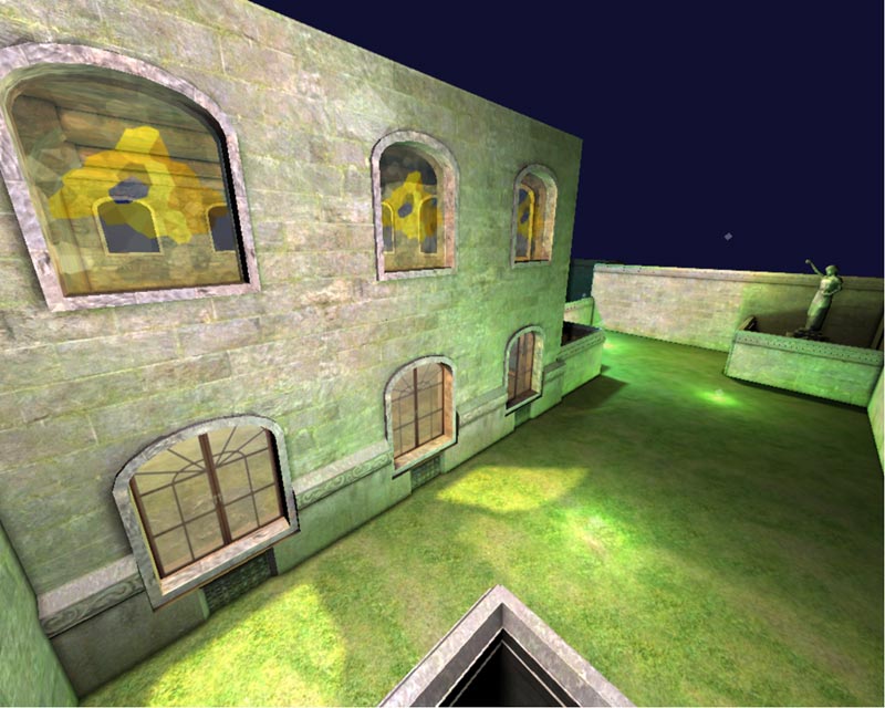 The light mapper uses a fast ray casting engine to quickly work out if a point will be in shadow and allows many lights to be used whilst still maintaining quick build times in the order of minutes for complex scenes and seconds for simple scenes.