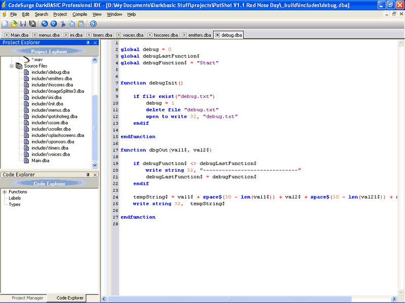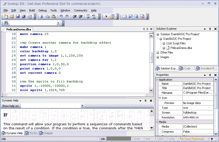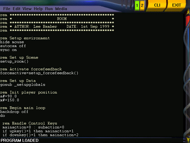 DarkBASIC started life with a humble but functional code editor that reflected the name of the product. I remember using it for the first time, and as a seasoned programmer I struggled with the simplicity of it. At the same time, I loved the fact that it drew me into the atmosphere of a different type of programming I wasn't familiar with. An interesting fact about this IDE is that it utilises DirectX version 3!