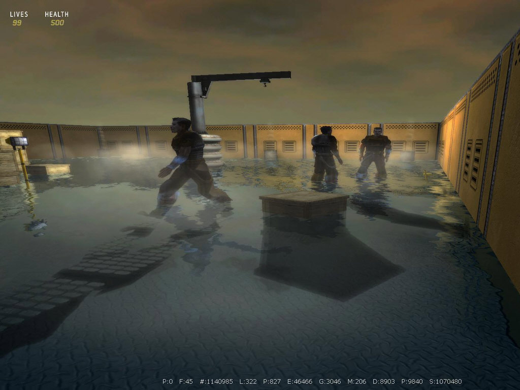 The author makes exploring every nook and cranny rewarding by hiding stashes of ammo and health packs. These packs are also subtle, it's easy to miss them if you just rush around, and it's easy to die if you just rush around too. The NCP's are good. They stand around in bio-hazard suits and give the impression of being possessed. The only small flaw in the design is a drop down area where you can get jammed between a pipe and the wall. But it's not too hard to free yourself. Overall a very creative, well designed game.
