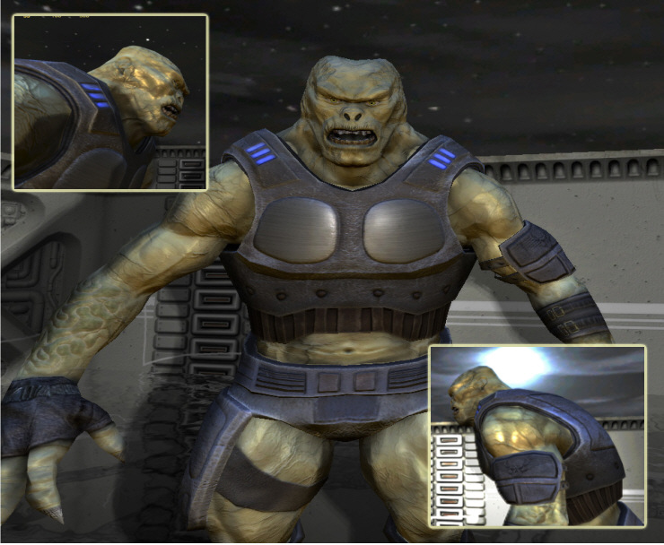 One of the most anticipated improvements of X10 is quite naturally the graphics; it's the first thing you experience, and first impressions last a long time. The image you see here is a preview of the new X10 Alien character called 'Magnason', and as you can see he's an impressive beast. As ugly as he is, you can only admire his polygonal beauty, and shader-enhanced vein-popping, oily skin!