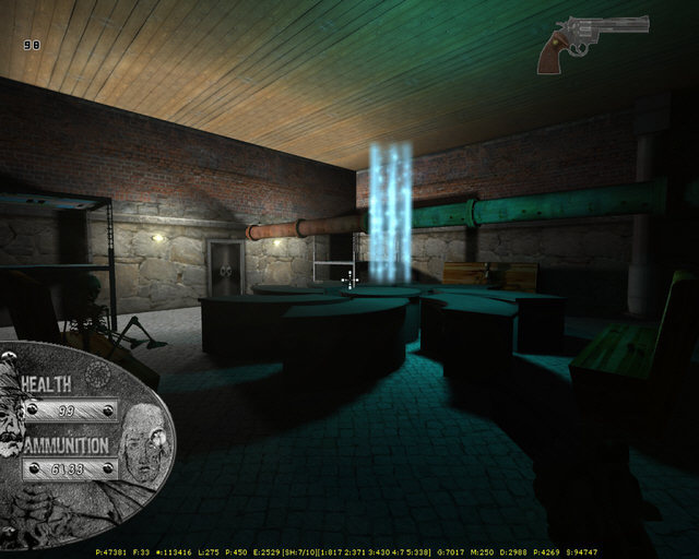 Created using FPS Creator, the game has been ingenioulsy scripted to ensure the feel is of an adventure game rather than a shooter. So standard scripts for opening doors, for example, are combined with the players current inventory as in any other adventure game, requiring keys and the correct objects to progress.
