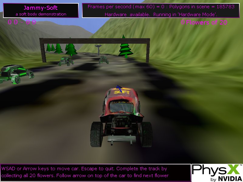 - Martin Dobes created a very cool demo, showing off a duel between two PhysX controlled vehicles bashing a ball around a physics environment, and driving through cloth banners, great fun!