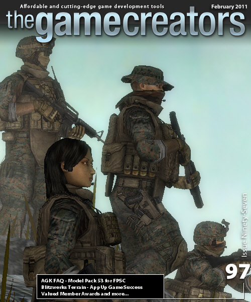 This month, you can read about two developers who are already realising the strength of their development tools combined with the ease of publishing through AppUp. There are questions and answers around AGK; A new model pack with never-seen-before features is released for FPSC; and many of the regular articles fill the remainder of the newsletter with plenty of inspiration to create your killer app!