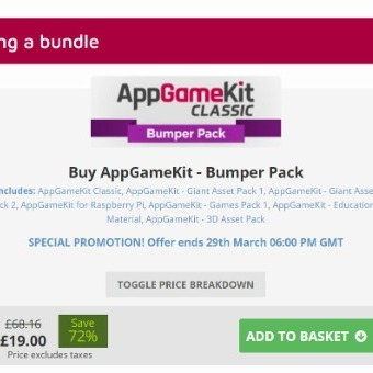 Don't miss this chance to add the AppGameKit Shader Pack, Sound Library Pack and Giant Asset Pack 1 titles to your game making tool box and save at the same time with some great discounts.