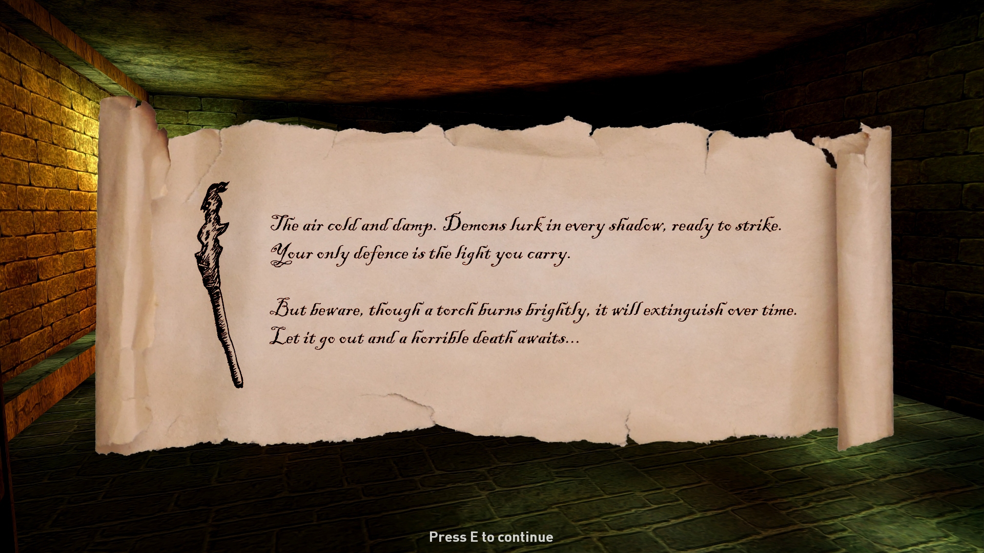 "Ignite has truly been a mixed media project for me", says Scott, "I've recorded and created new sound effects for the game, hand-illustrated sprites using a fountain pen and made my own 'parchmen? by staining paper with coffee and distressing the edges. I even created my own fire decals for the torch by making a flaming torch for real out of a pole and some cotton bedsheets soaked in paraffin, setting it on fire in my back garden, and filming the results". (NB. TheGameCreators does not endorse the use of real fire in the pursuit of game development - basically we don't advise you try this at home!).