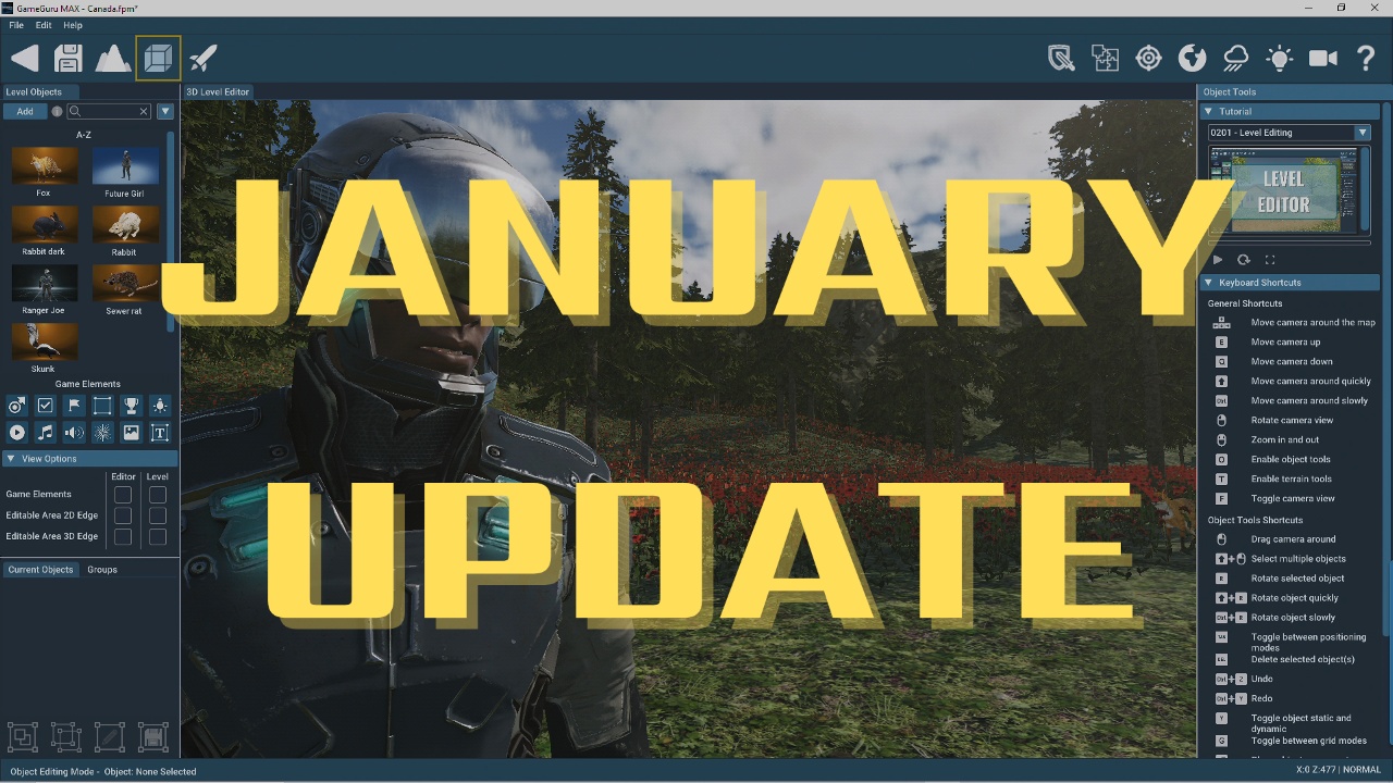 Having crept in with the grass editing tools to complete the terrain editing mode, we followed up with final pass improvements to the object management system for intuitive editing of objects and introduced the long-anticipated height map importing into our terrain generator. Bringing in accurate scans of Snowdon and the Grand Canyon are now possible too within the levels you are creating.