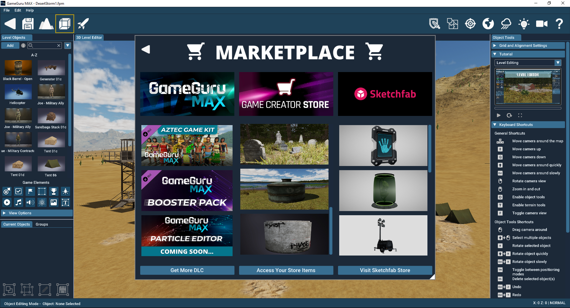 If you need more game assets, we doubled down and threw in an extra goody in the form of an integrated Marketplace that opens up GameGuru MAX to third party asset stores. That, combined with the model importer, enables you to explore the world for content you need for your next game idea and bring it into GameGuru MAX. We have also been lucky enough to deeply integrate the 'Game Creator Store' and items purchased there can be downloaded directly into your object and sound library without even leaving the software.